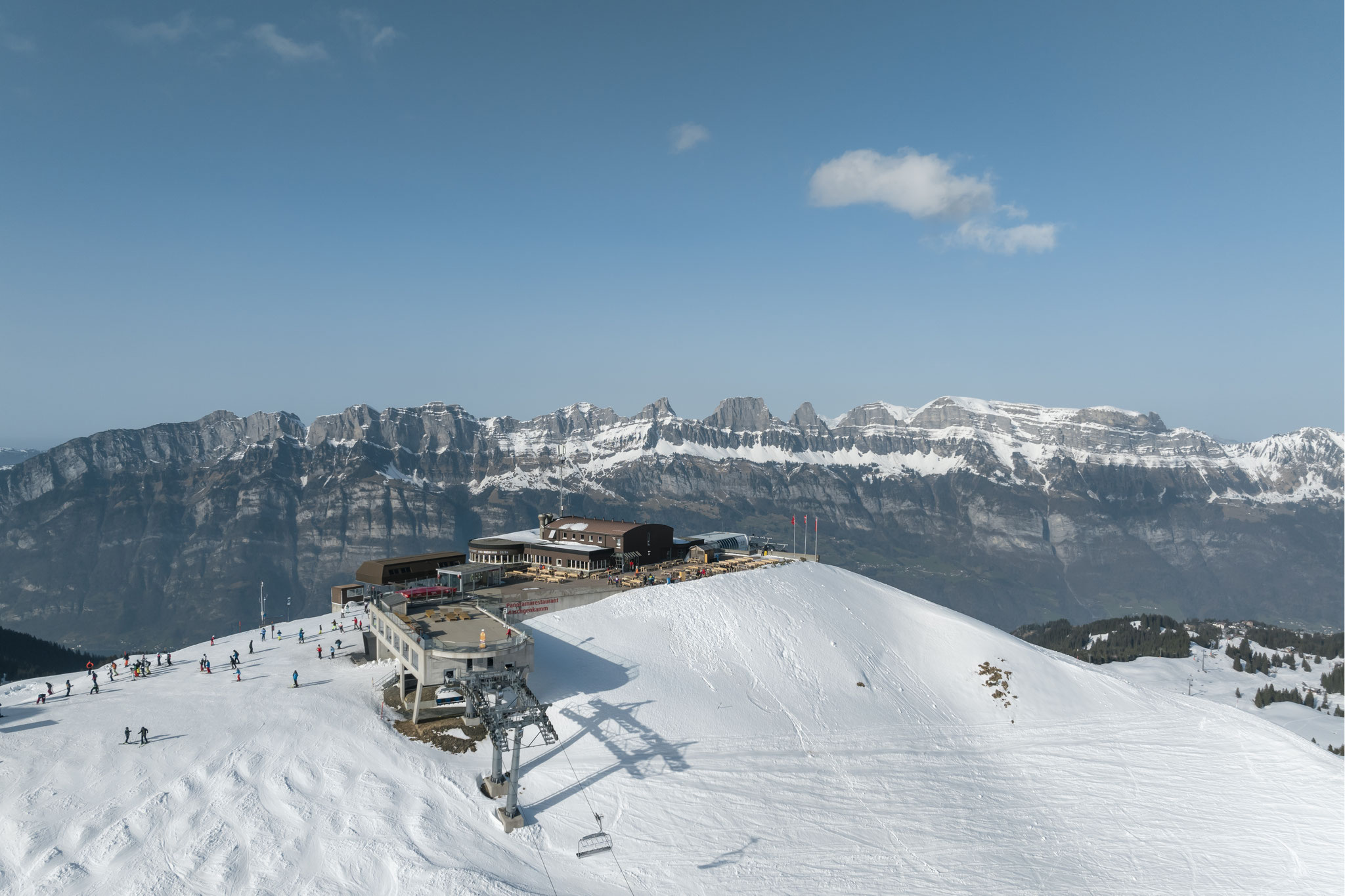 Geniessen Sie die Panoramaaussicht auf die umliegende Bergwelt. Lassen Sie Ihren Blick auf der einen Seite über die Weite des Spitzmeilen-Gebiets schweifen oder werden Sie auf der anderen Seite von der magischen Churfirsten- und Alvierkette mit ihren zackigen Gipfeln hoch über dem Walensee verzaubert.